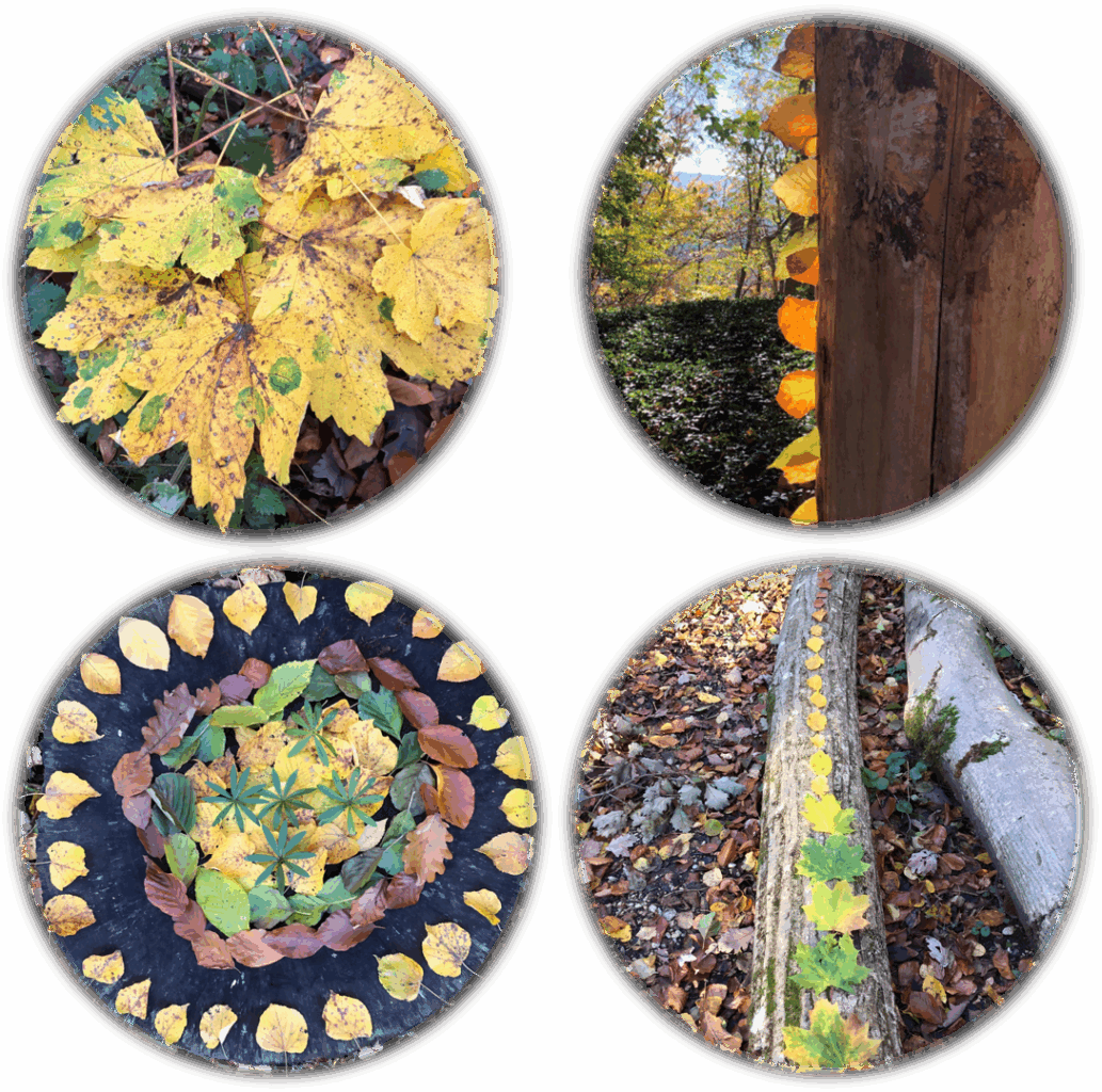 Im Wechsel der Jahreszeiten gibt es viele Möglichkeiten Naturkunst – LandArt zum Ausdruck zu bringen. Gestalten lässt sich mit Blüten, Äste, Lehm, Baumfrüchte, Rinde, Moos, … eben alles, was sich so finden lässt. Dabei entstehen Unikate, die für den Moment da sind und mit dem Wind wieder gehen dürfen.